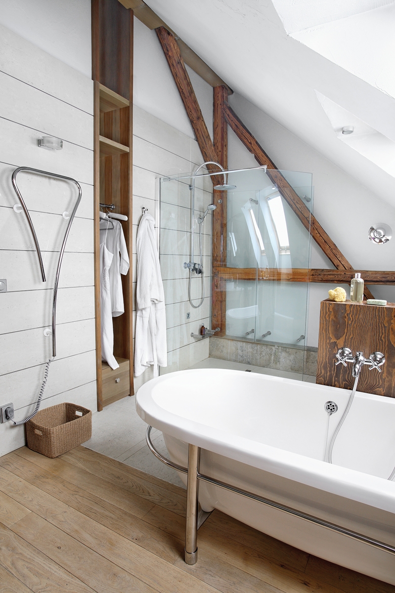 Kąpiel pod skosami – jak ładnie i praktycznie urządzić łazienkę na poddaszu ze skosem