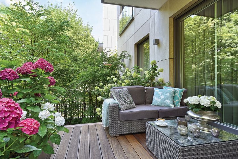 Marta wychowała się wśród róż, ale w swoim ogrodzie ze skarpą przy parku Morskie Oko posadziła wszelkie odcienie hortensji, różowołososiowe liliowce i żurawki.
