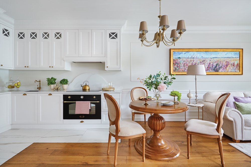Bożena potrzebowała miejsca do odpoczywania po stresującej pracy. Jej dom jest idealny. Białe wnętrza z dodatkami w kolorach pudrowego różu, fuksji i starego złota są przytulne, lekkie i kobiece.