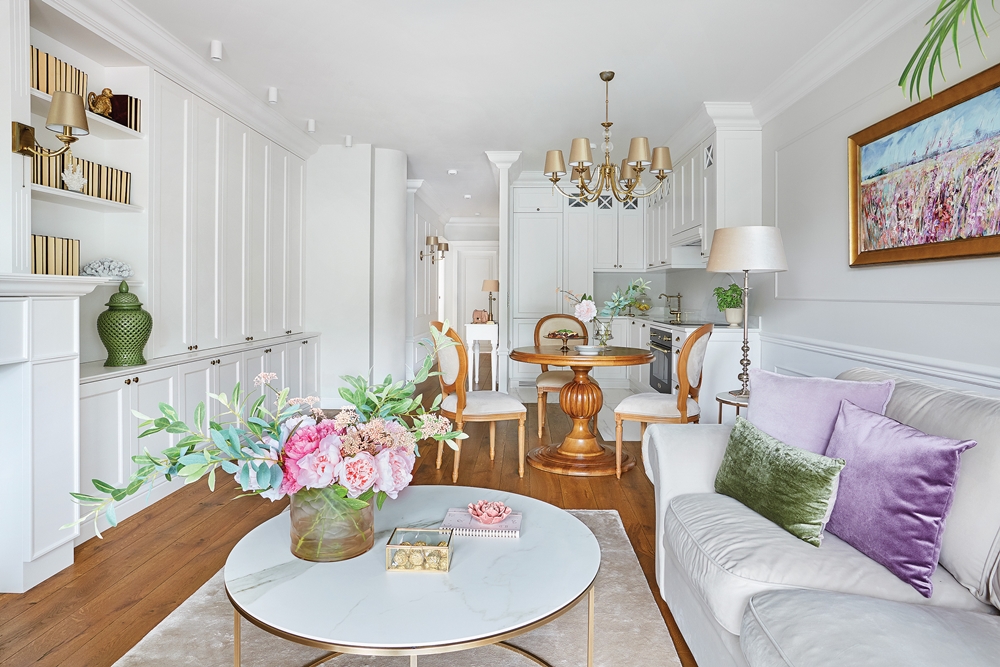 Bożena potrzebowała miejsca do odpoczywania po stresującej pracy. Jej dom jest idealny. Białe wnętrza z dodatkami w kolorach pudrowego różu, fuksji i starego złota są przytulne, lekkie i kobiece.