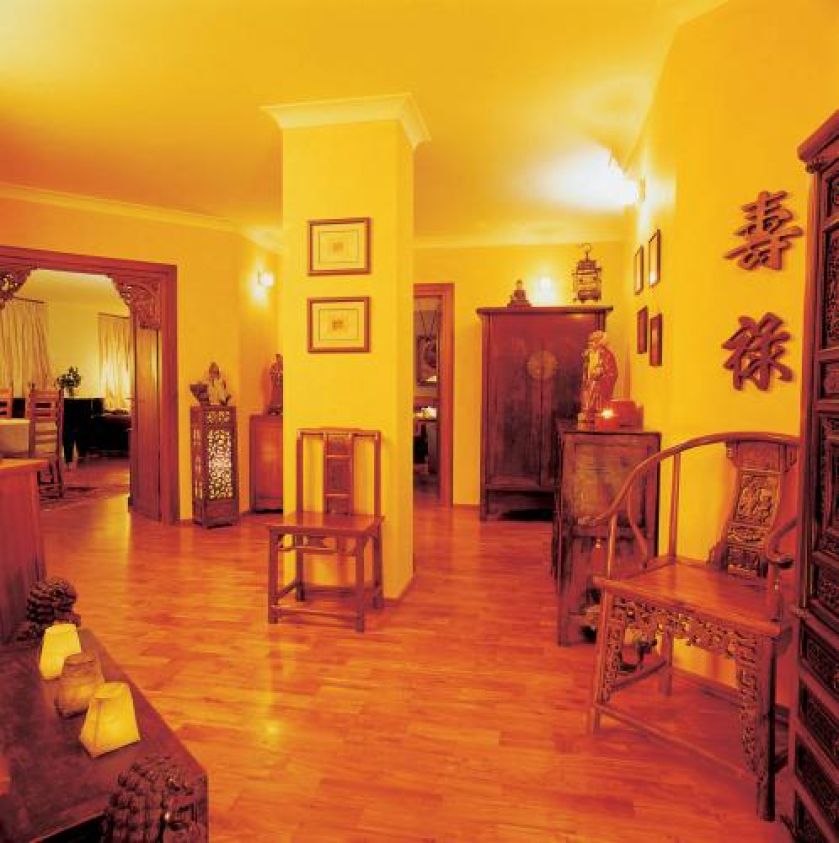 W holu - kolekcja orientalnych mebli i sztuki.