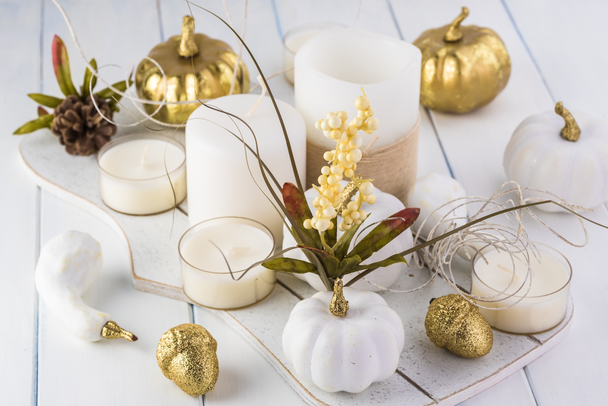 Dekoracje z białej dyni są nie tylko efektowne, ale także ponadczasowe. I pasują nawet do najbardziej eleganckiego wnętrza!
