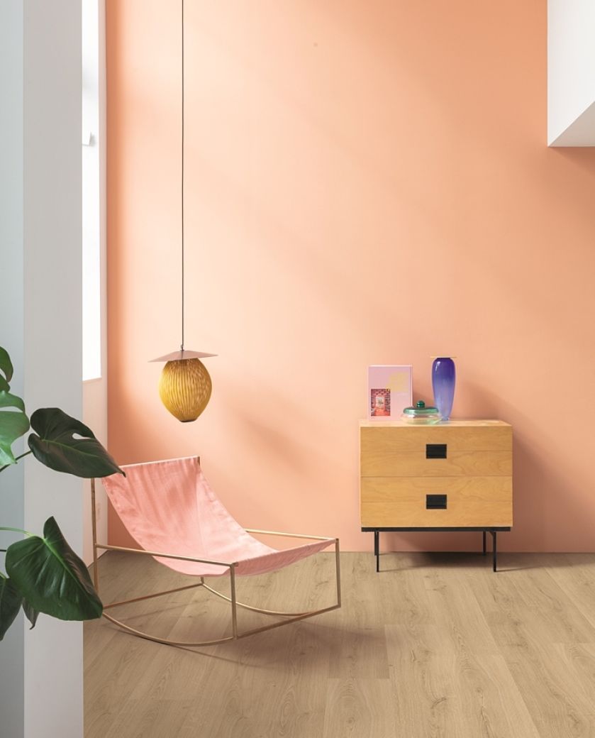 Jak to urządzić?Podłoga winylowa Alpha Vinyl marki Quick-Step jest odporna na wilgoć, zarysowania oraz plamy. Świetnie nadaje się nie tylko do salonu czy holu, ale doskonale sprawdzi się też w kuchni i łazience.
