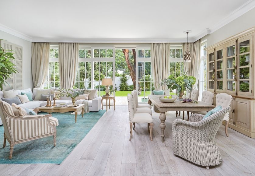 • aranżacja wnętrza w stylu hamptons