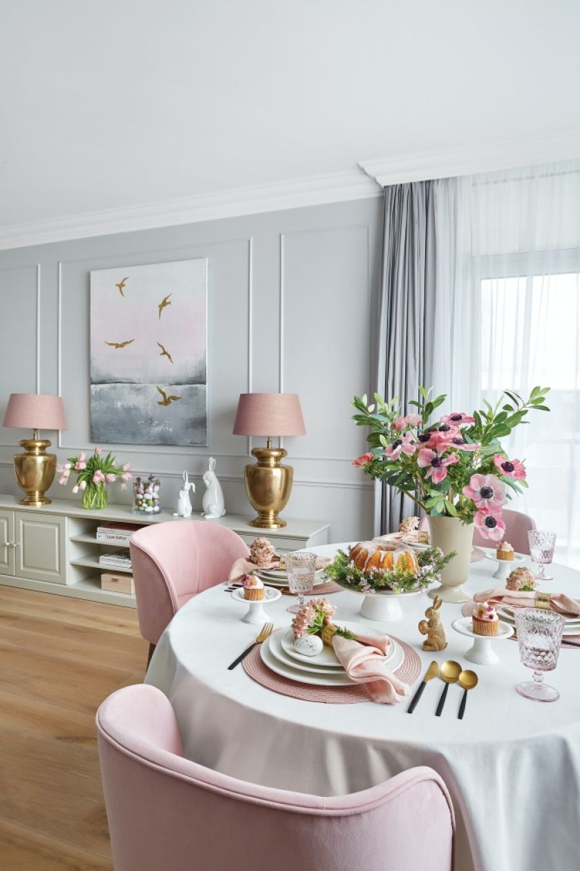 Pastelowa Wielkanoc – eleganckie mieszkanie urządzone w szarościach i różu gotowe na święta