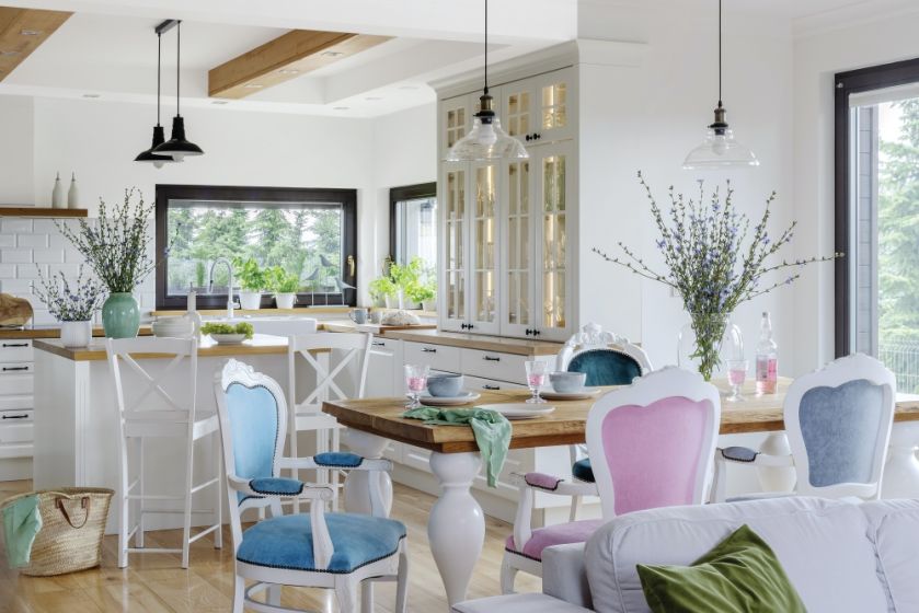 W domu Kasi i Michała czuć wiosnę i dobrą energię. Wnętrza na początku miały być shabby chic, ale w praniu wyszedł raczej styl mieszany. Dużo tu drewna i pięknych pastelowych kolorów.