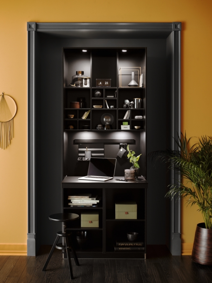 Nowoczesne systemy regałów są tak wszechstronne, że schowamy do nich niemal wszystkie domowe akcesoria. Urządzimy też wygodny kącik biurowy w kuchni. Z powodzeniem zastąpią tradycyjne szafki i ciekawiej od nich wyglądają!