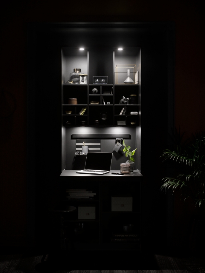 Nowoczesne systemy regałów są tak wszechstronne, że schowamy do nich niemal wszystkie domowe akcesoria. Urządzimy też wygodny kącik biurowy w kuchni. Z powodzeniem zastąpią tradycyjne szafki i ciekawiej od nich wyglądają!