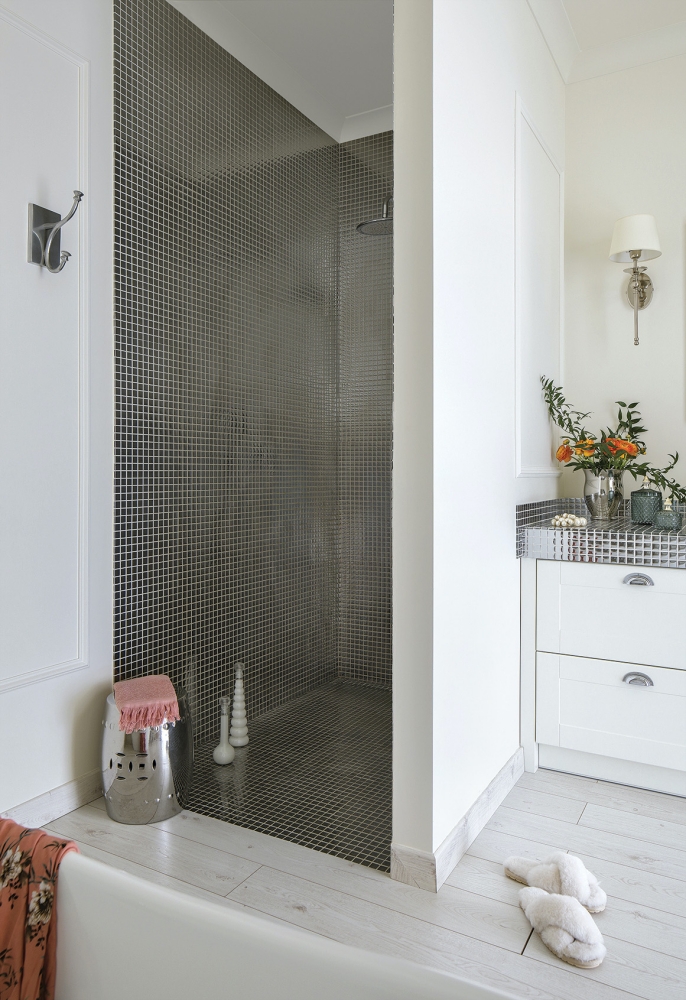 łazienka biało srebrna