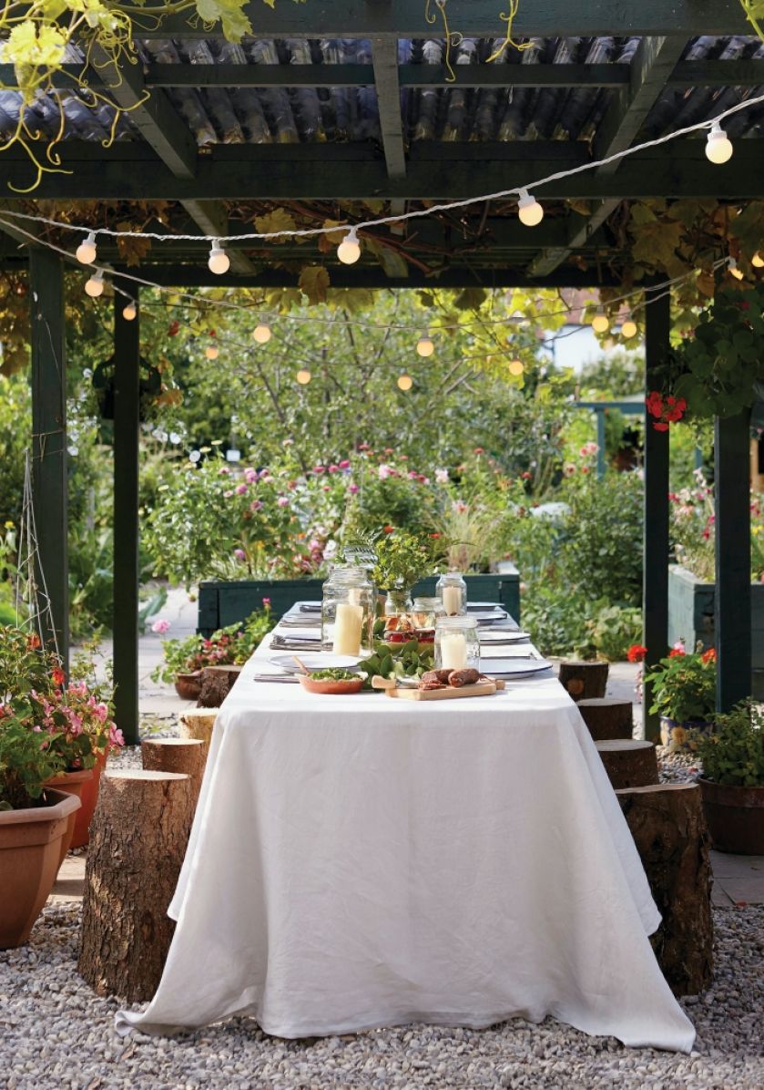 Jak stworzyć bajeczną aranżację stołu na przyjęcie w ogrodzie? Wykorzystajmy potencjał ogrodowej zieleni. Niech będzie naszym naturalnym parawanem, dywanem i parasolem.