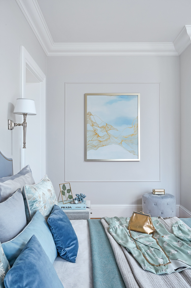 Elegancko, lekko i przytulnie – pastelowy błękit i złote akcenty w klasycznych wnętrzach