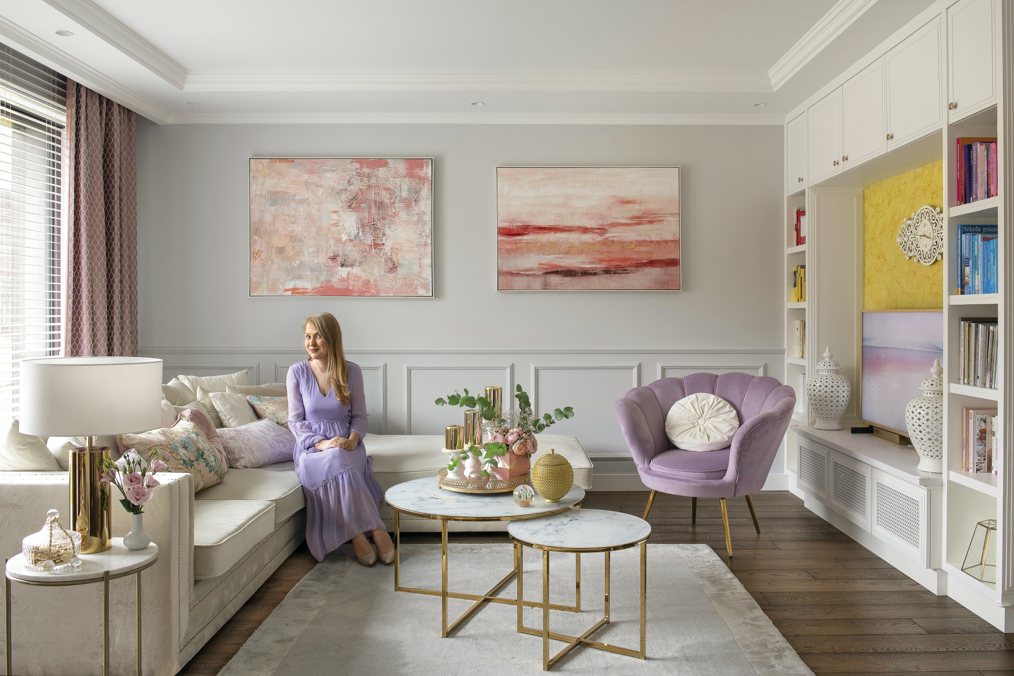 To bardzo kobiecy apartament! Eleganckie wnętrza urządzono w pudrowym różu i złocie