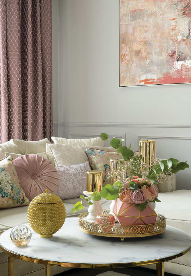 To bardzo kobiecy apartament! Eleganckie wnętrza urządzono w pudrowym różu i złocie