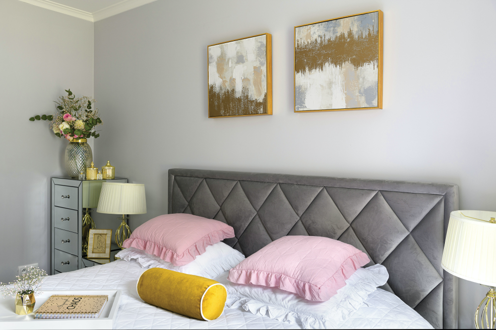 To bardzo kobiecy apartament! Eleganckie wnętrza urządzono w pudrowym różu i złocie