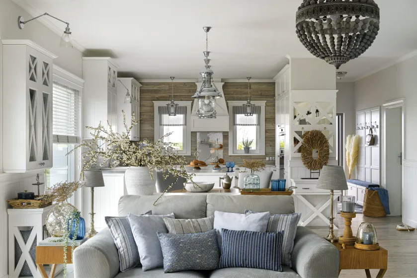 W odcieniach relaksu – wnętrza w stylu hamptons urządzone w bieli, szarościach i błękitach