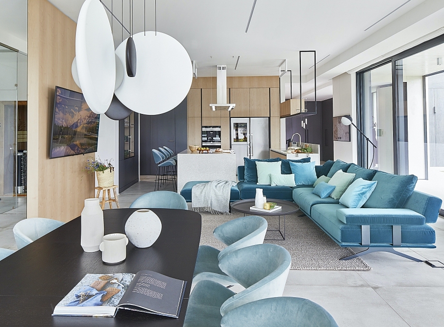 • nowoczesny apartament z klasycznymi detalami i odcieniami bieli i granatu