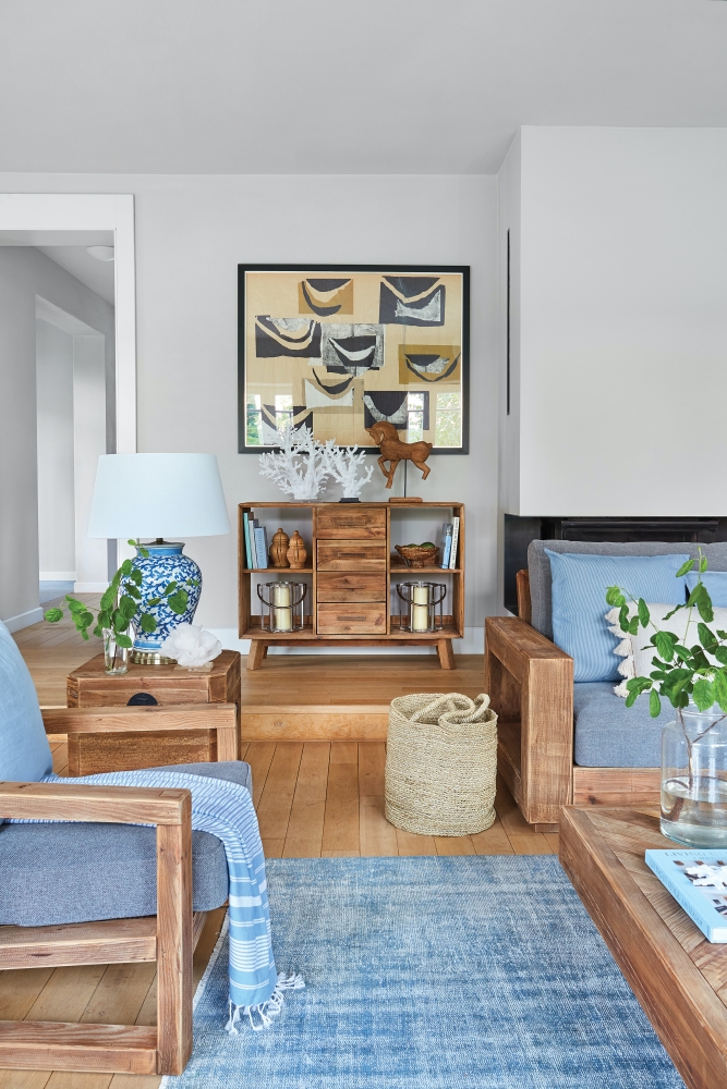 Rezydencja w drewnie i błękitach – w tych wnętrzach połączono elegancję stylu hamptons i naturalność stylu eko