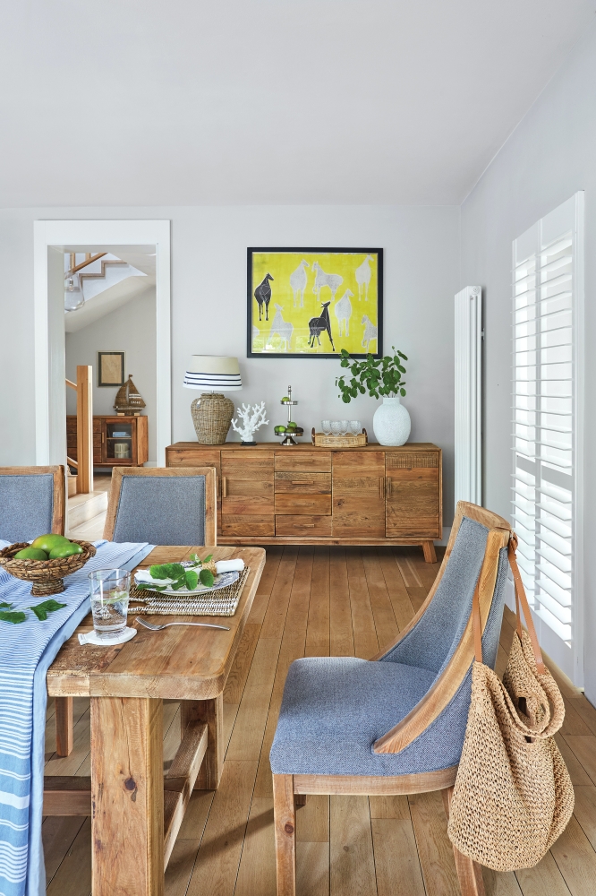 Rezydencja w drewnie i błękitach – w tych wnętrzach połączono elegancję stylu hamptons i naturalność stylu eko