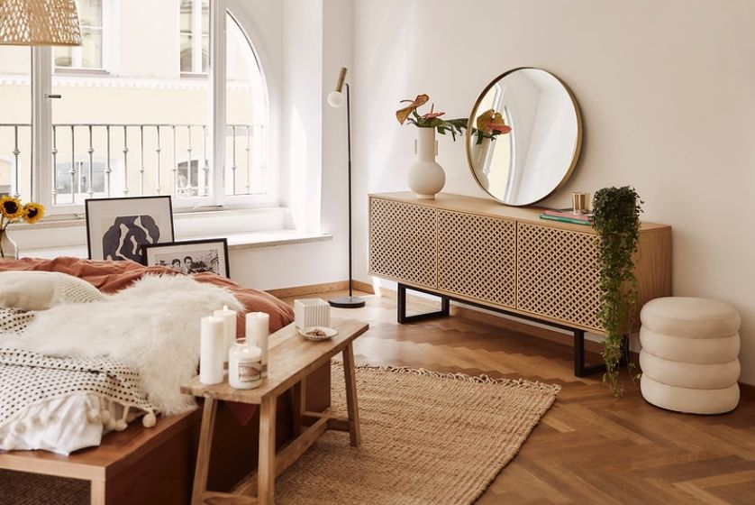 Lepiej się wyśpisz, kiedy wszystkie rzeczy będą na swoim miejscu. Oto najciekawsze pomysły na szafki nocne, schowki, półki i komody, które pomogą zadbać o porządek w sypialni.