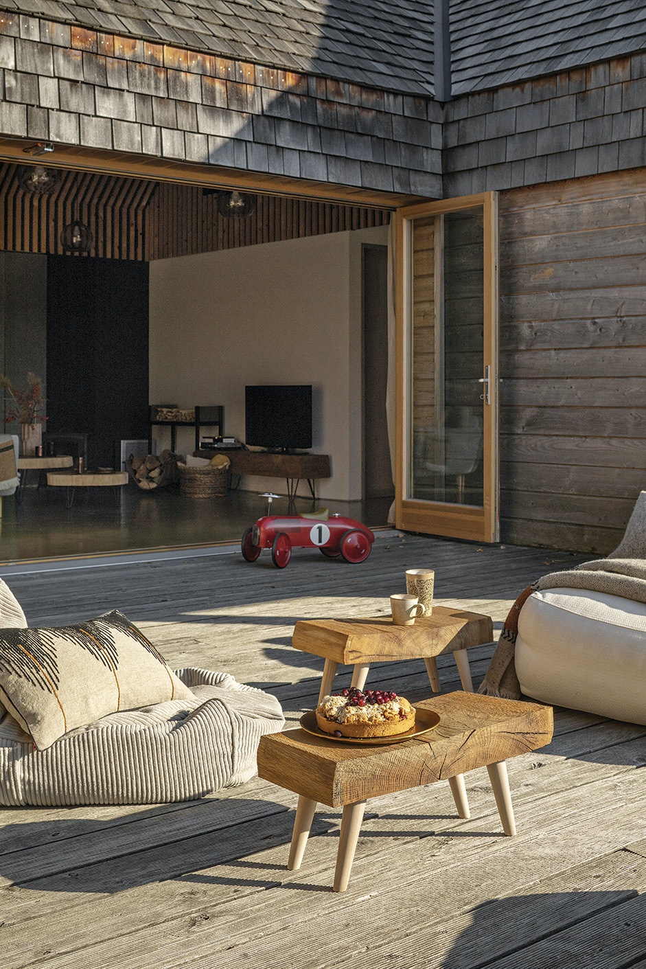 Idealnie wpisany w naturę, zrobiony z materiałów, które pięknie się starzeją pod wpływem deszczu, słońca i wiatru. Ten drewniany dom, choć jest nowy, ma duszę starej łemkowskiej chaty!