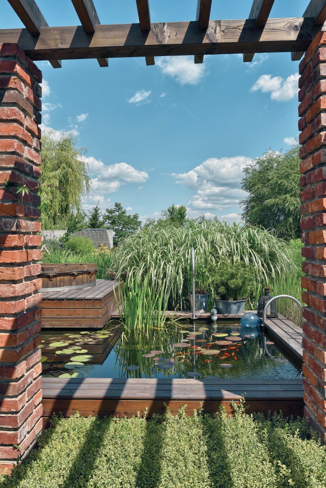 Trejaż i kaskady – ogród z oczkami wodnymi, ekojacuzzi i pokojami pod chmurką