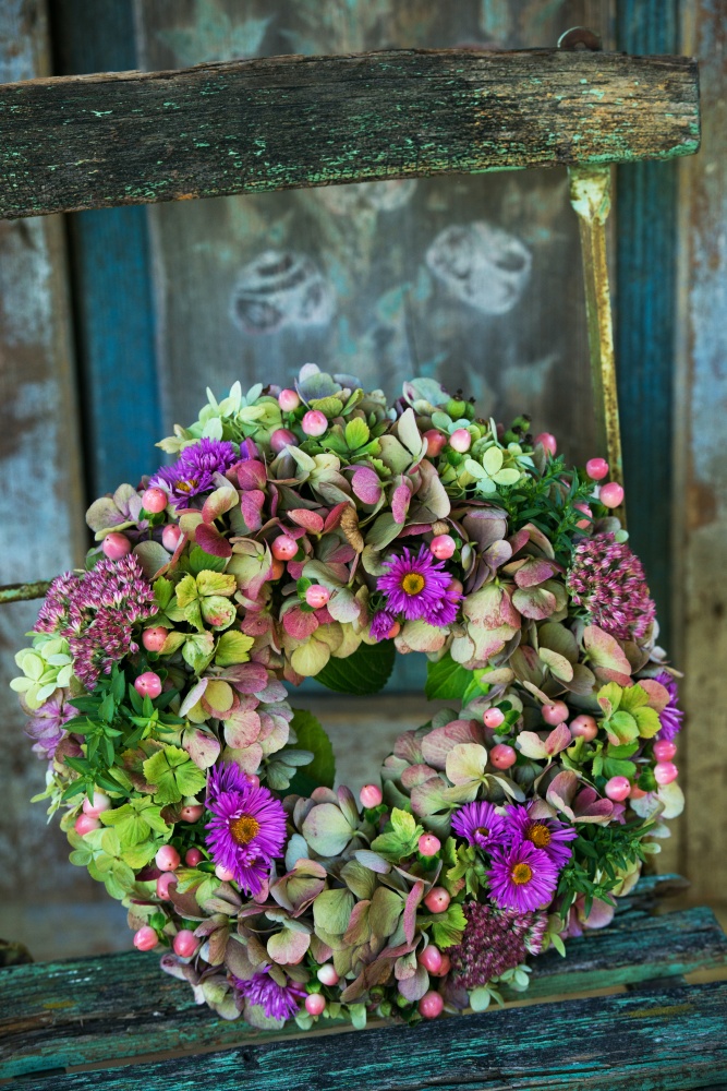 jesienny wianek z hortensji