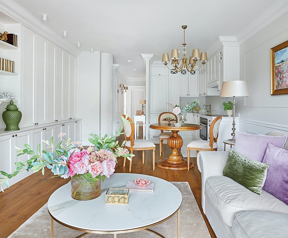 • nowoczesny apartament z klasycznymi detalami i odcieniami bieli i granatu