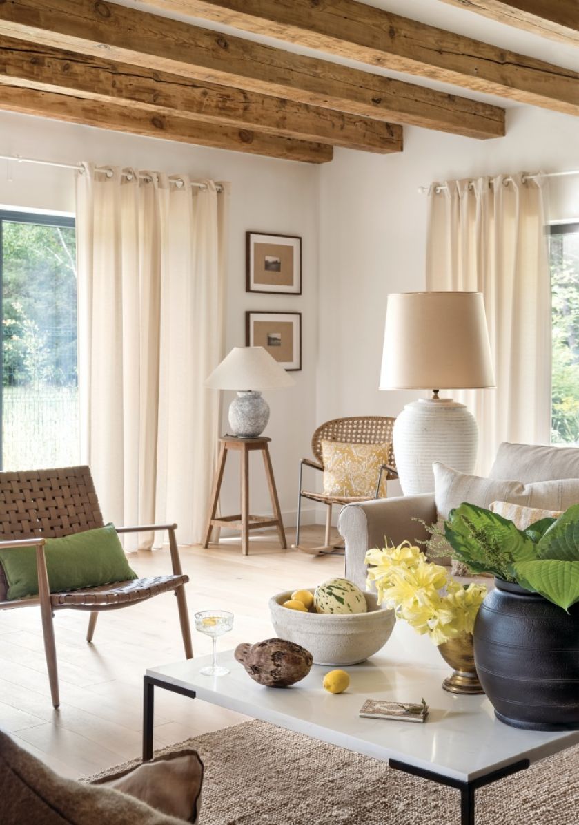 Letnisko zamienione na dom – przytulne wnętrza w kolorach ziemi urządzone naturalnymi materiałami