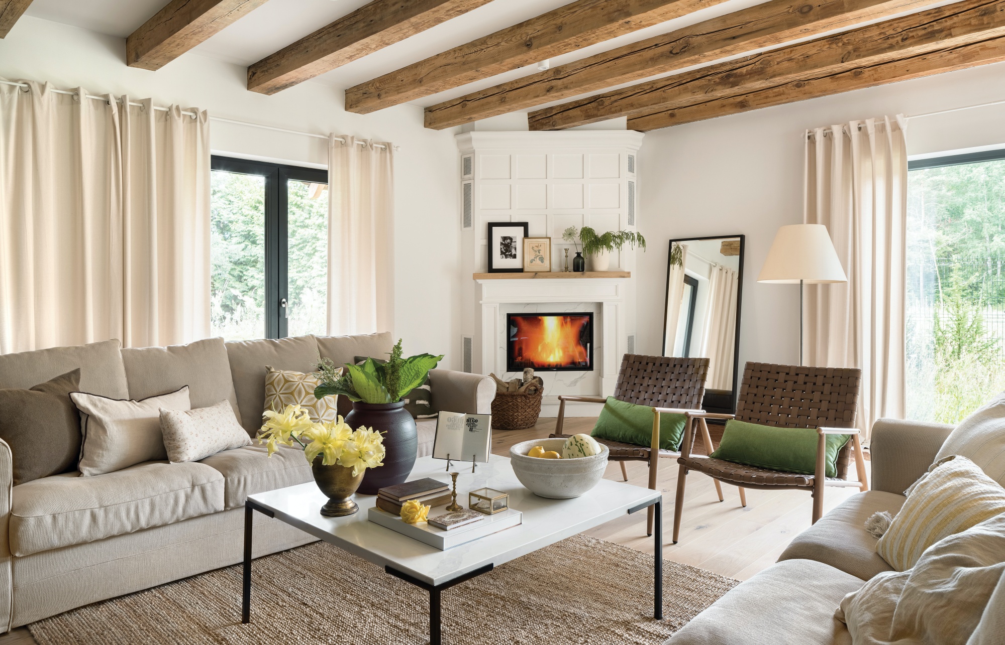 Letnisko zamienione na dom – przytulne wnętrza w kolorach ziemi urządzone naturalnymi materiałami