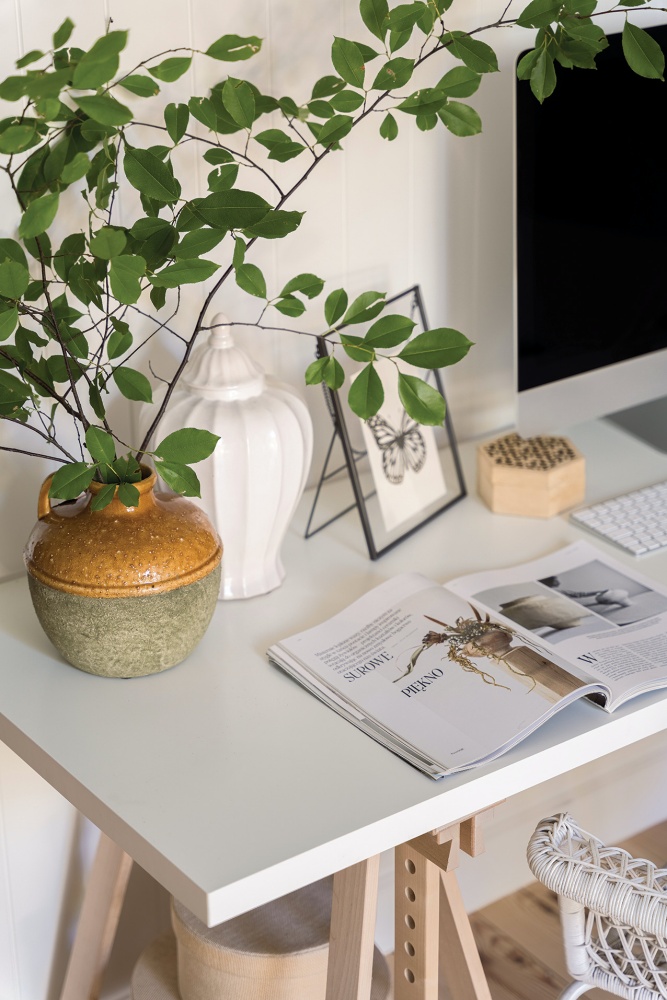 białe biurko przytulna aranżacja