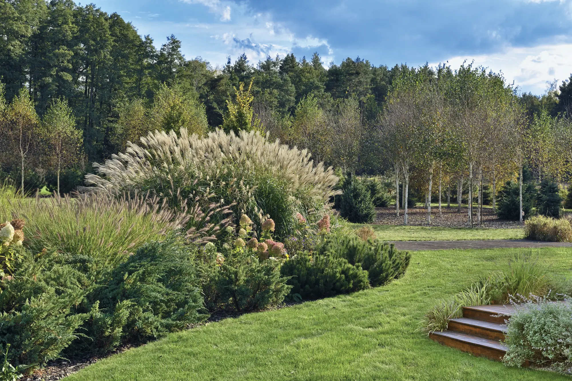 Ogrody małe i dużeTen ogród z brzozowym zagajnikiem powstał jak za dotknięciem czarodziejskiej różdżki. Na dziewiczej podmokłej łące wyrosło 350 drzew, które pięknie wtopiły się w leśne tło.