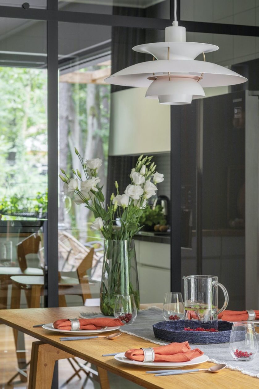 Pierwsza była działka, dom musiał się do niej dopasować. Ma modrzewiową elewację i ogromne okna, przez które, niczym w telewizorze, Karolina, Kuba i ich synek Bruno oglądają niekończący się serial… z życia lasu.