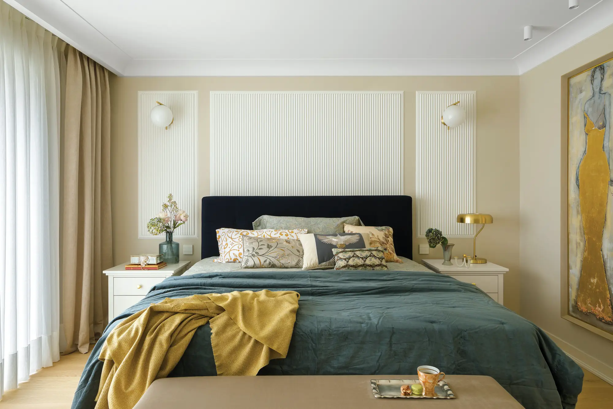 Nie nowojorski styl jest tu najważniejszy, choć i on robi wrażenie w tym pięknym wnętrzu. Wisienką na torcie jest malarska tapeta oraz delikatne nawiązania do art déco.