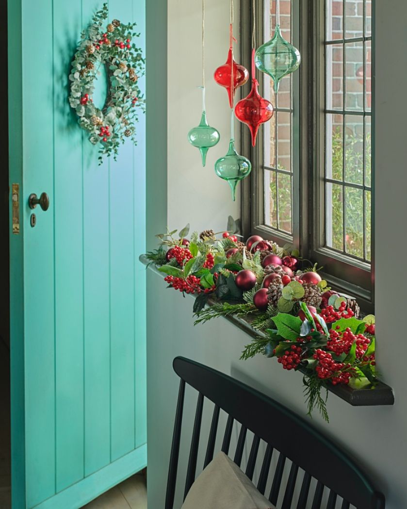 • świąteczny salon dekoracje w oknie