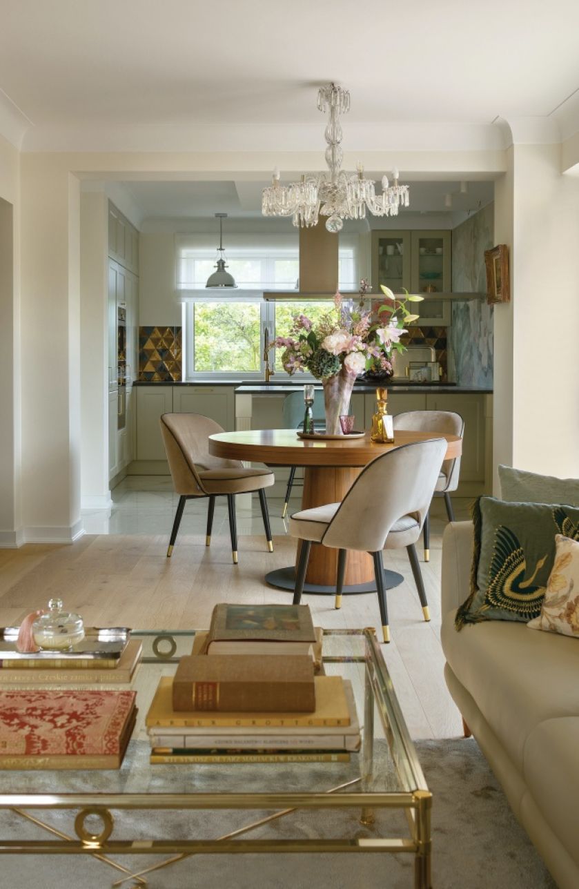 Nie nowojorski styl jest tu najważniejszy, choć i on robi wrażenie w tym pięknym wnętrzu. Wisienką na torcie jest malarska tapeta oraz delikatne nawiązania do art déco.