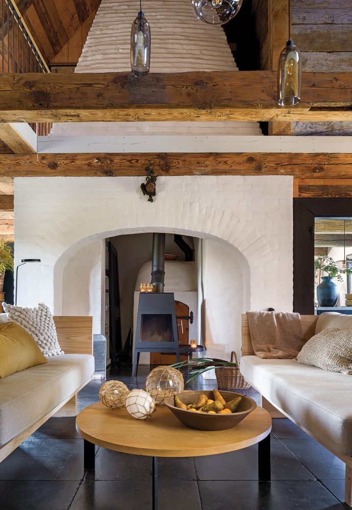 salon z drewnem w starym domu
