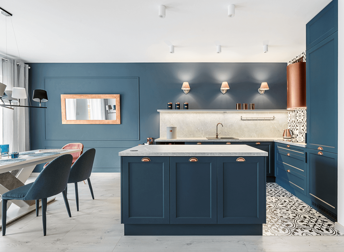 Niebieska kuchnia – w jakim stylu ją urządzić? Glamour, skandynawskim, a może hamptons?