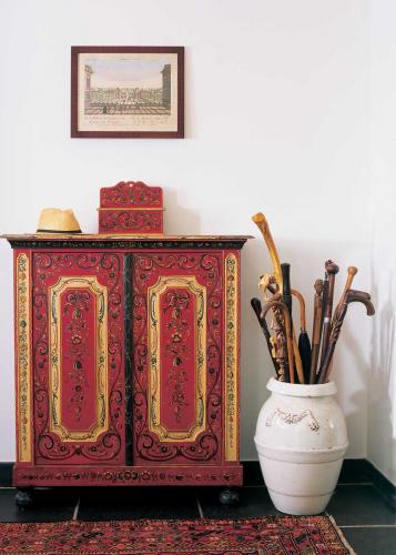 Malowana czerwono- złota szafka. Bunkier ze sztuką