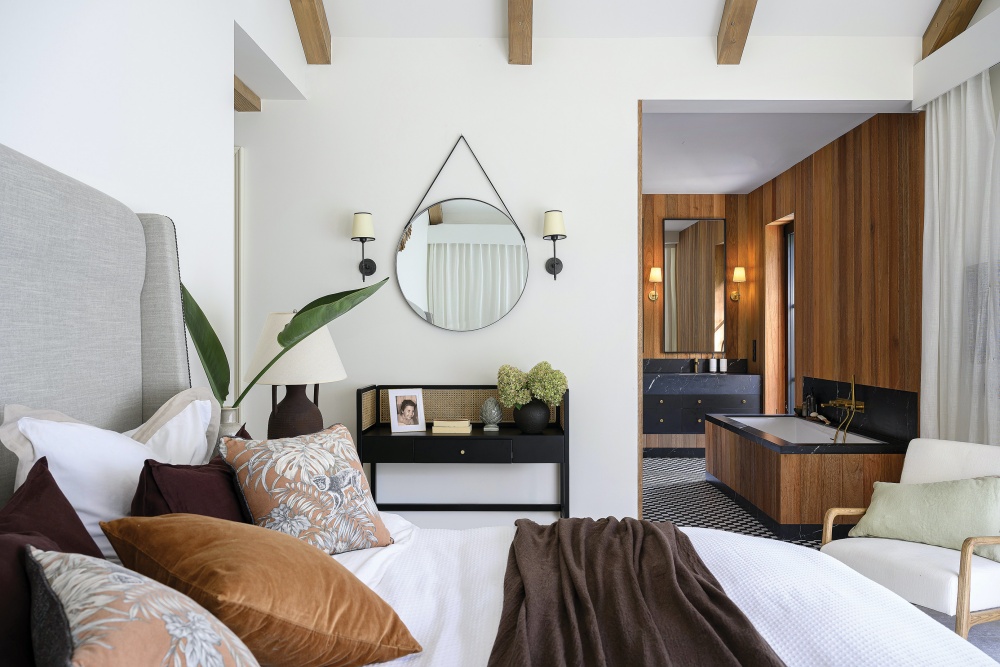 sypialnia w stylu farmhouse