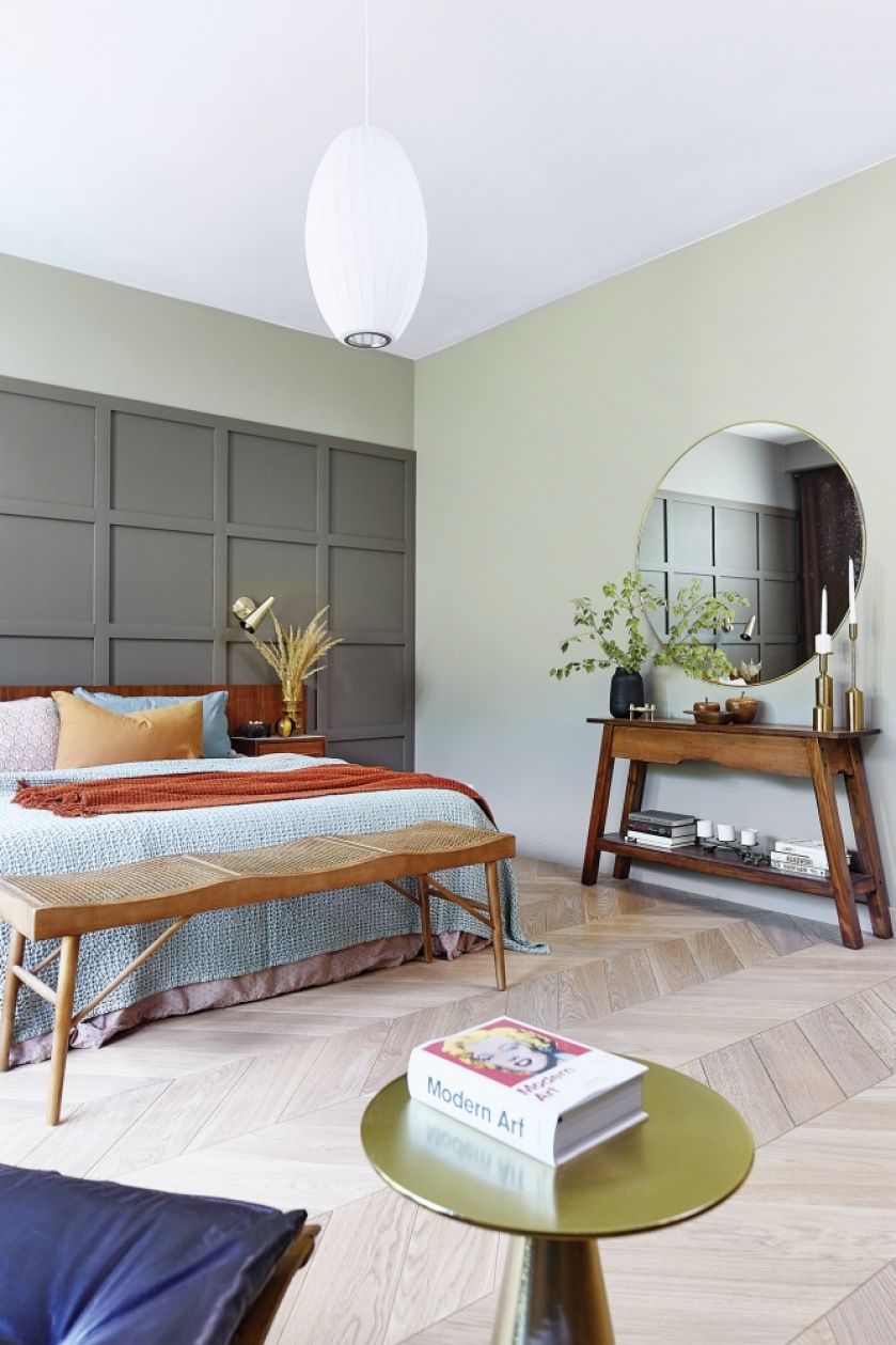 • ciemna turkusowa sypialnia