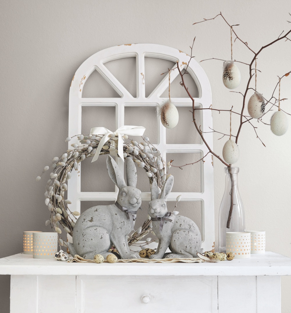 Dekoracja wielkanocna w doniczce? Proszę bardzo! A może aranżacja z zającami na konsoli, ozdobna klatka wyłożona mchem i jajami albo królik chroniony kloszem? Zainspiruj się naszymi pomysłami na świąteczne ozdoby, które bez trudu przygotujesz sama. Zobacz 10 prostych trików na dekorację domu na Wielkanoc i puść wodze fantazji!