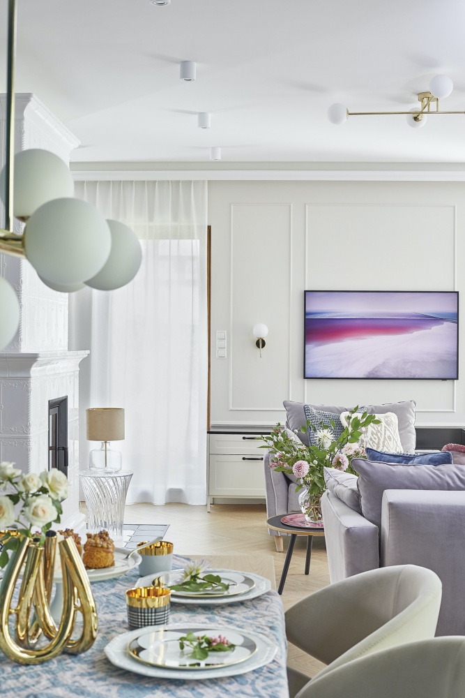 elegancki salon z jadalnią