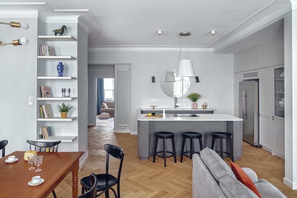 To mieszkanie miało pasować do kamienicy z lat 30., w której się znajduje. Dzięki prostym, ale przemyślanym, zabiegom architektki Moniki Gruszki-Ziółkowskiej ciekawie nawiązuje do modernistycznej stylistyki.