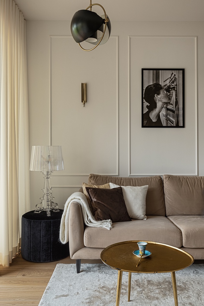 beżowy salon w stylu nowojorskim