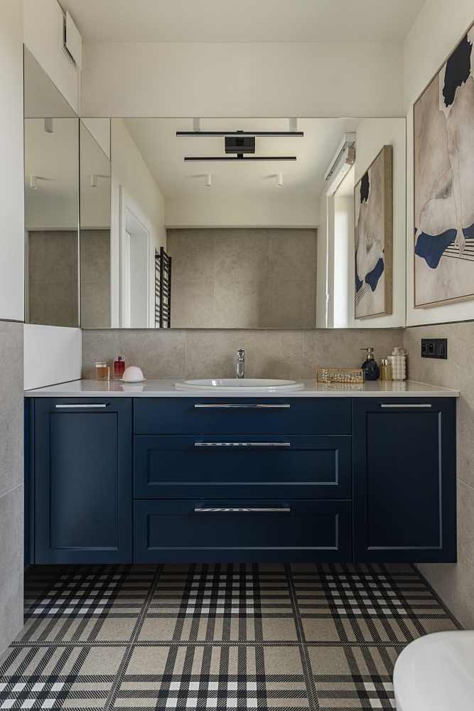 Dom urządzony w stylu nowojorskim – eleganckie wnętrza z akcentami granatu i mosiężnymi dodatkami