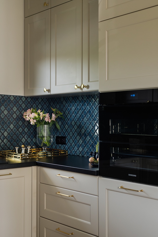 Dom urządzony w stylu nowojorskim – eleganckie wnętrza z akcentami granatu i mosiężnymi dodatkami