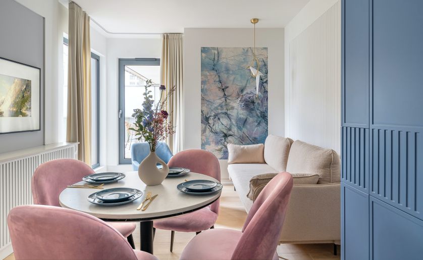 39-metrowa kawalerka z akcentami błękitu – to małe mieszkanie w Sopocie urządzono elegancko i praktycznie
