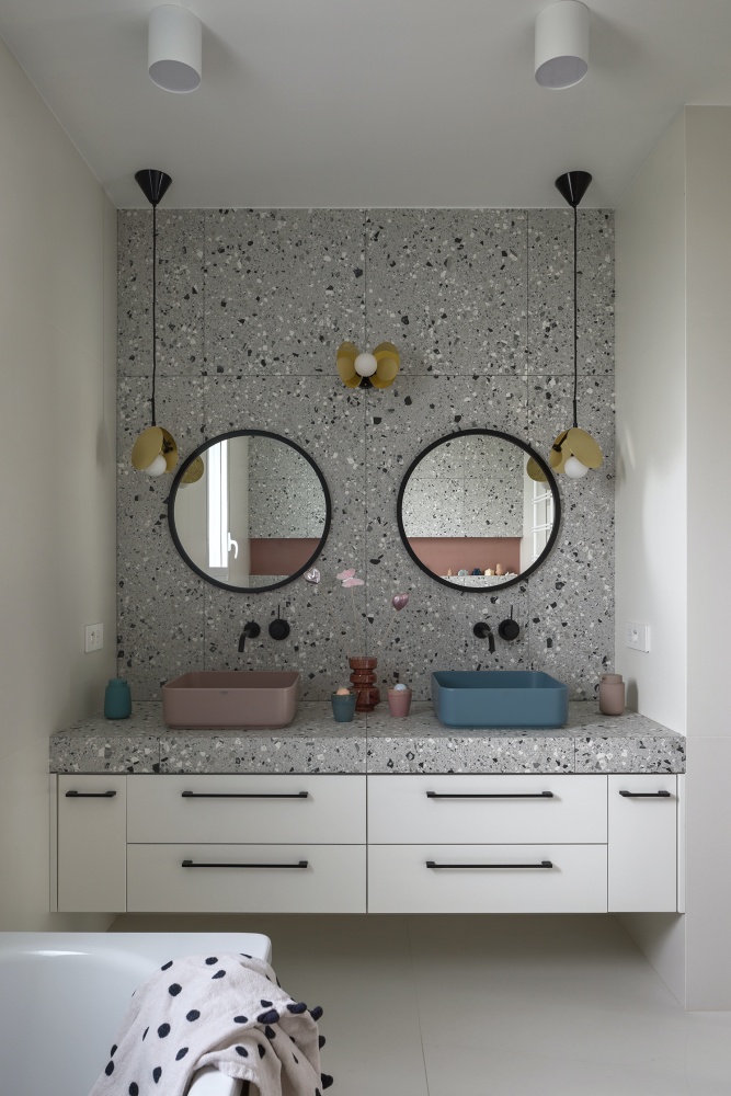 szara łazienka z lastryko