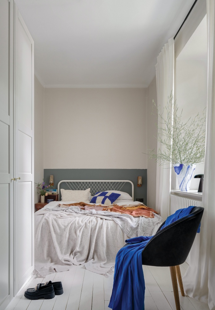 • ciemna turkusowa sypialnia