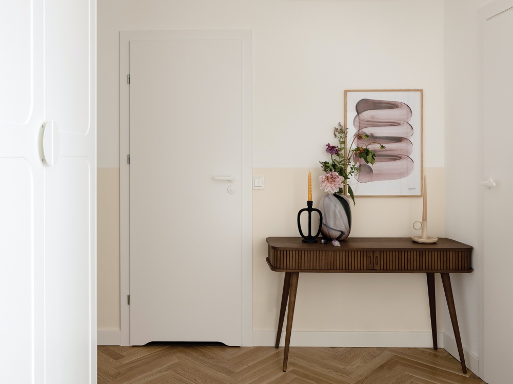 • mały przedpokój w bloku w pastelowych kolorach